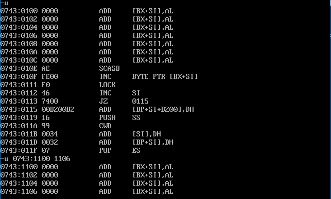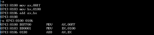 U命令:将内存中的机器指令翻译成汇编指令
