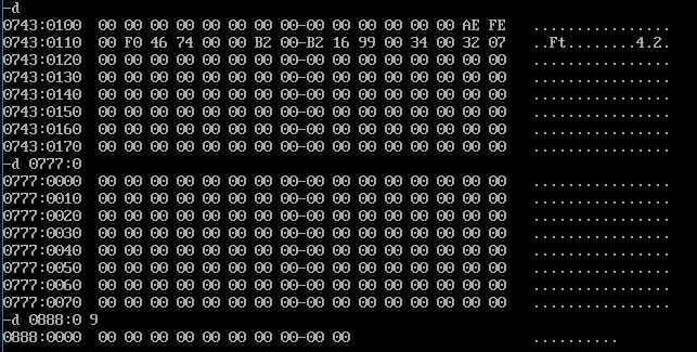 -d 段地址:偏一偏二            ;两个地址间的内容