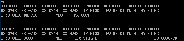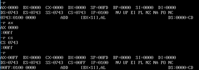 R命令:查看改变CPU寄存器的内容